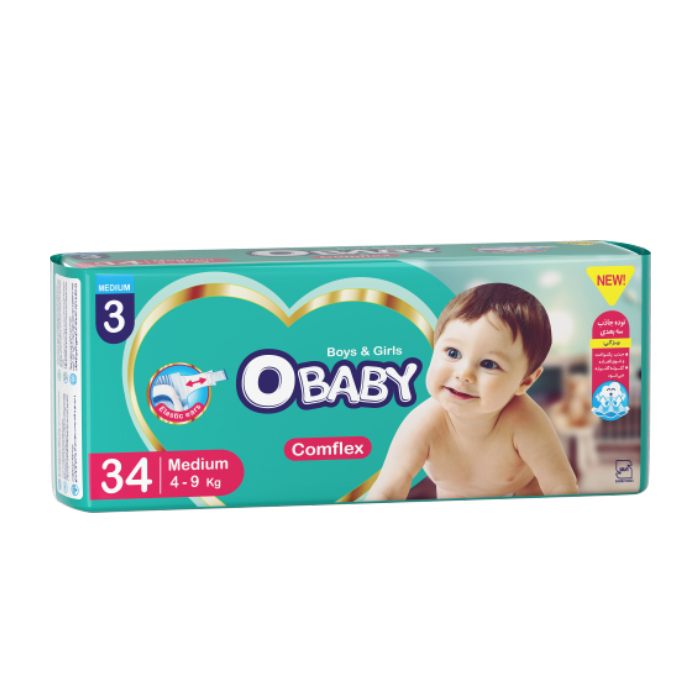 پوشک کامل کامفلکس( کشی + 3D ) OBABY دوبل سایز متوسط 34 عددی(6بسته)