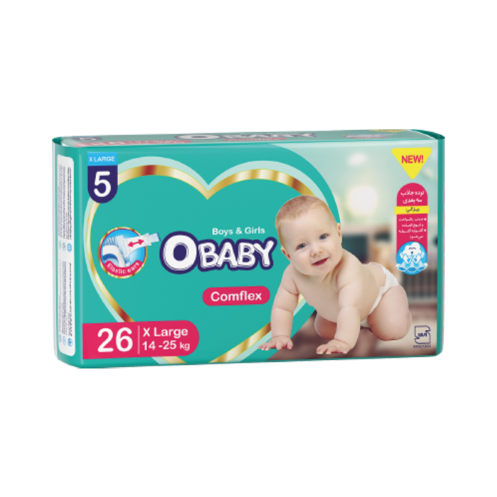 پوشک کامل کامفلکس( کشی + 3D ) OBABY دوبل سایز خیلی بزرگ 26عددی(۶بسته)