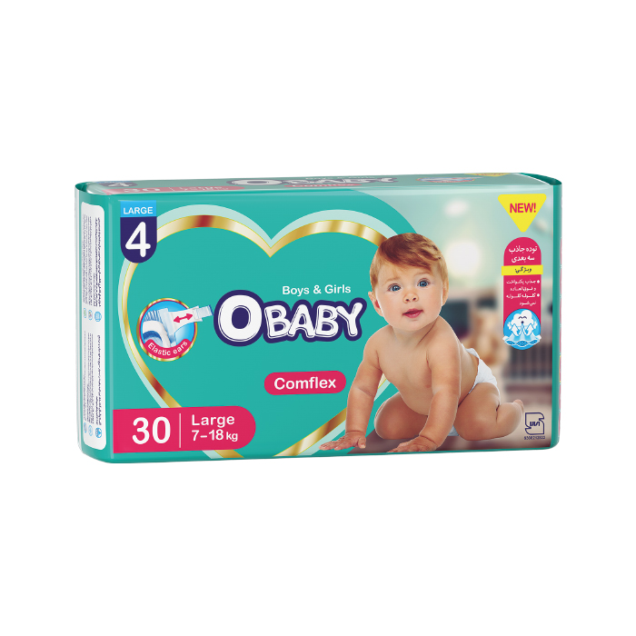 پوشک کامل کامفلکس( کشی + 3D ) OBABY دوبل سایز بزرگ 30 عددی(6بسته)